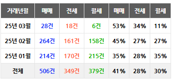 2024년 평균 1000건이라고 봤을 때, 25년 1월 683건, 2월 806건으로 조금은 거래량이 적다.