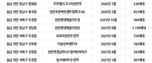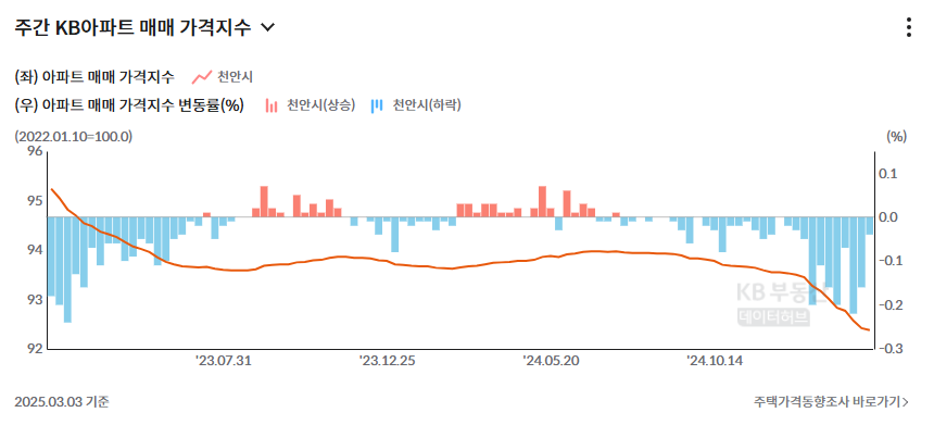 천안의 경우, 23년 이후 시장이 조금은 회복되는 듯하다가 25년에 다시 시장이 얼어붙고 있는 것 같습니다.