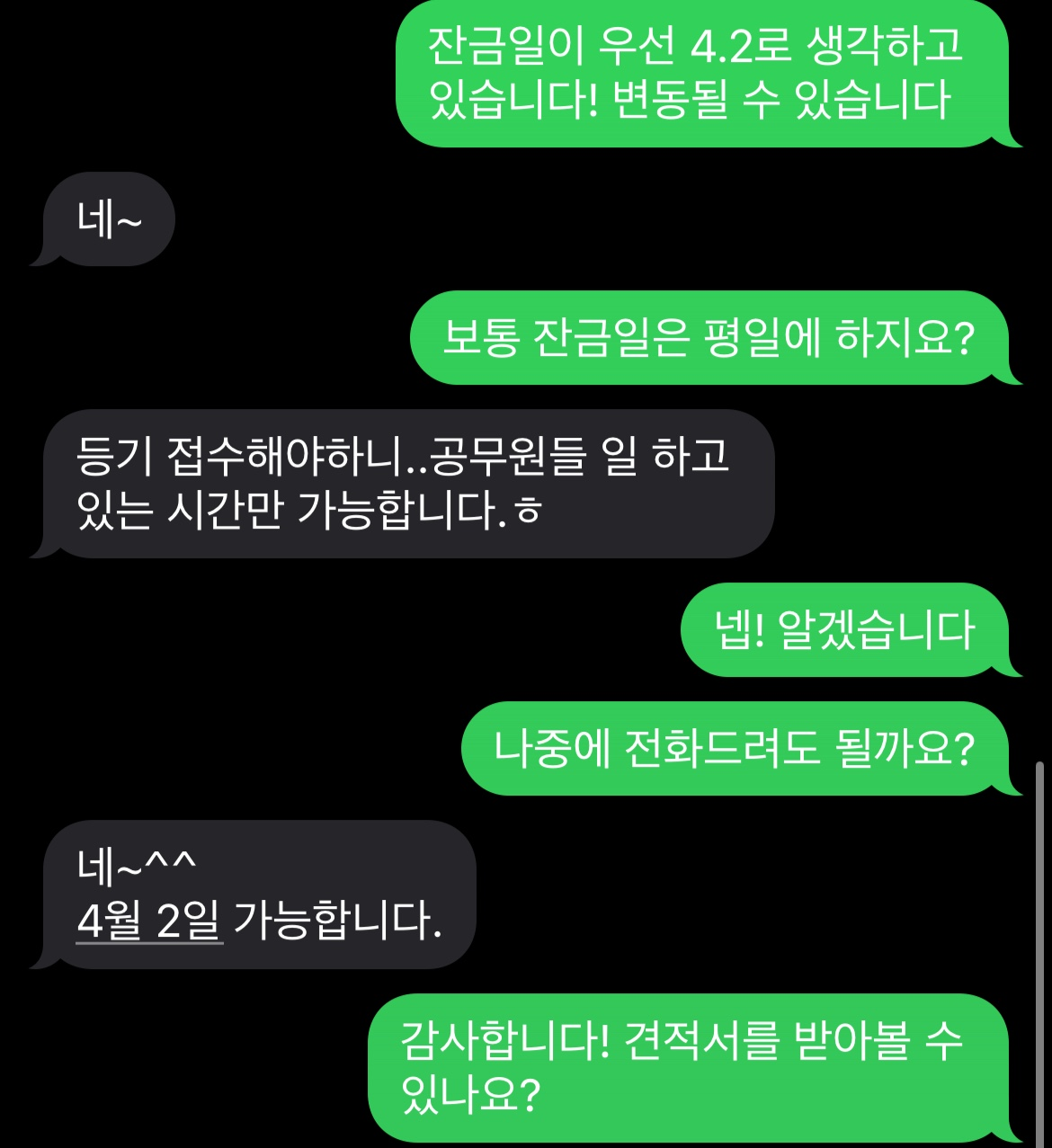 그래서 오늘 거래를 진행하는 부동산 사장님이 소개시켜 주신 법무사님께 먼저 전화했다.
