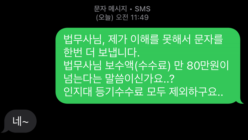 법무사: (매매 가격을 듣더니,) 그 정도면 기본 80만원 입니다.