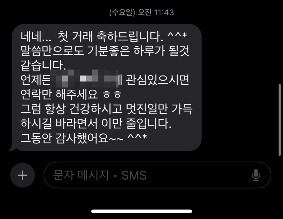 4) 물건을 함께 봤던 다른 부동산 사장님께 감사함 문자 보내기