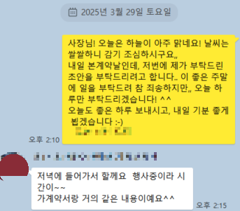 진심으로 응원의 이야기도 해주셔서 더욱 제가 용기를 낼 수 있었던 것 같습니다.