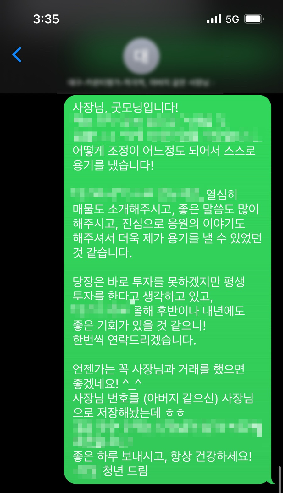 돌이켜보면 이것도 평소 부동산 사장님과 관계를 잘 맺어온 덕분인 것 같다.