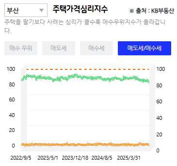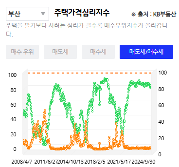 지금의 부산은 전세가 상승과 동시에 매매 가격은 아직 올라오지 않거나 떨어지고 있어 투자 타이밍을 줄 수도 있습니다.전체적인 매수 심리는 아직 상당히 부족한 느낌입니다.남들의 관심이 덜할 때, 투자할 수 있는 그런 용기가 필요할 때가 올 수도 있겠네요!