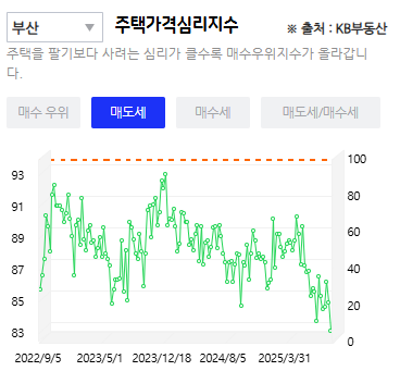 부동산 가격의 급격한 상승 시기였던 20년도에는 매도세가 20 까지 떨어진 적도 있습니다.