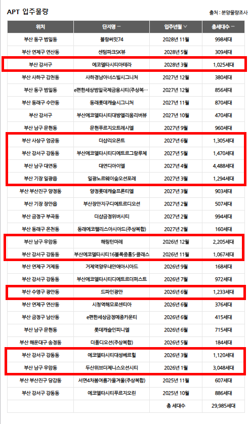 | 3 | 앞으로 3년간 입주 물량이 어떠한가? | 2025년부터는 적정 물량 이하로 입주 2027년에는 큰 입주가 있음. (남구 대연디아이엘) |