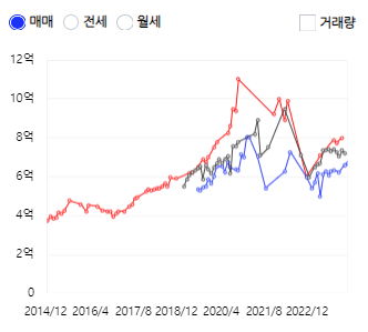 파란색은 2022년에 입주한 신축 아파트 B단지(전용 84)