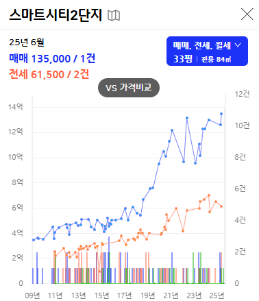 24년 초까지는 전세가 오르는 추세였다가 다시 전세가 마저 하락하고 있네요.
