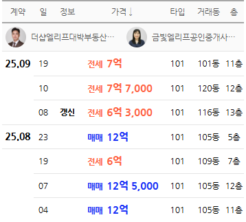 1. 대전광역시 랜드마크 가격 흐름 (25.09.25.)