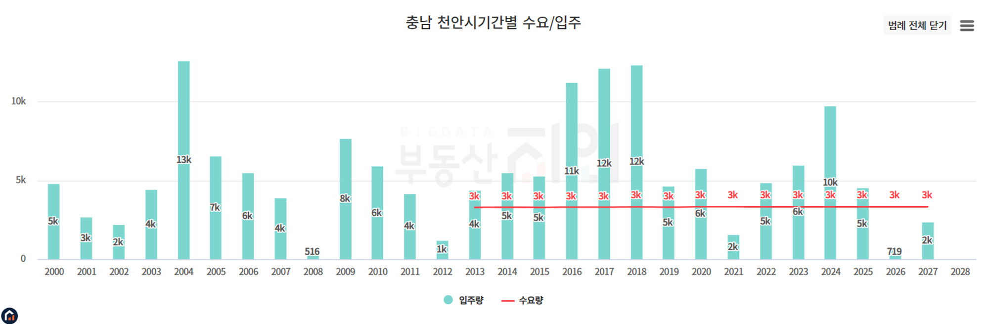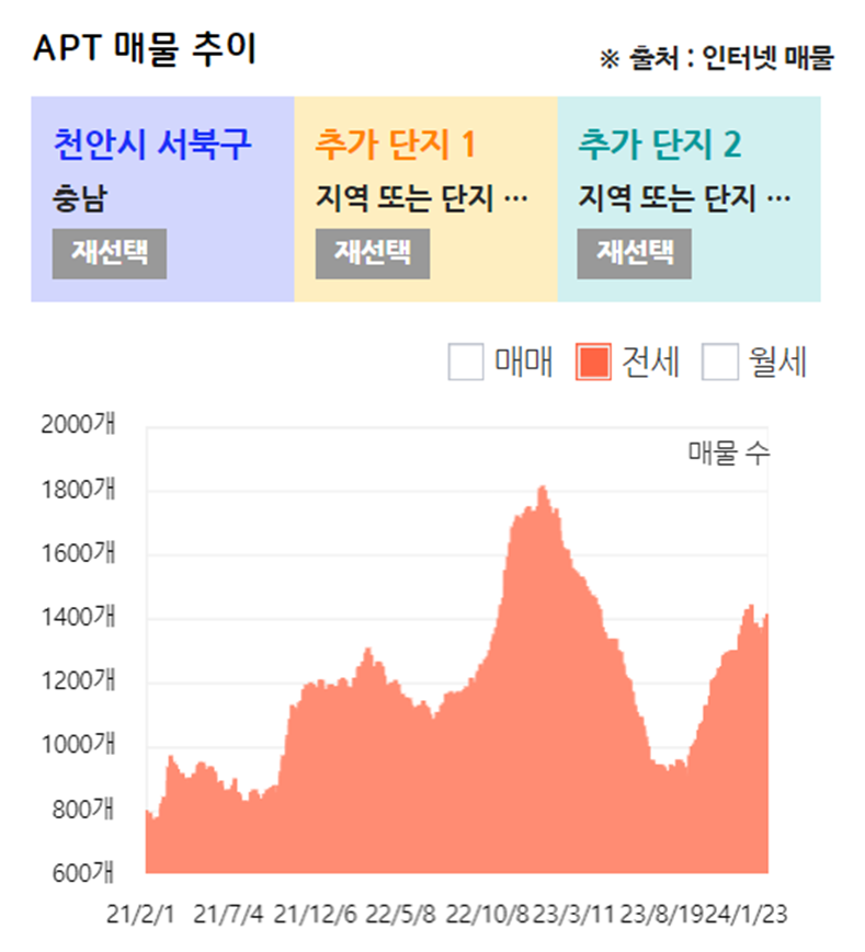 천안은 2024년에 공급이 많이 있습니다. 이러한 영향으로 전세가가 쉽게 오르지 못하고 있습니다.