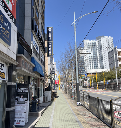 ▶ 불당생활권처럼 높은 신축 상가는 아니지만 길가에 학원가나 생활 근린 상권들이 잘 형성되어 있어 생활하기에 불편함을 느낄 수 없을 것 같았습니다.