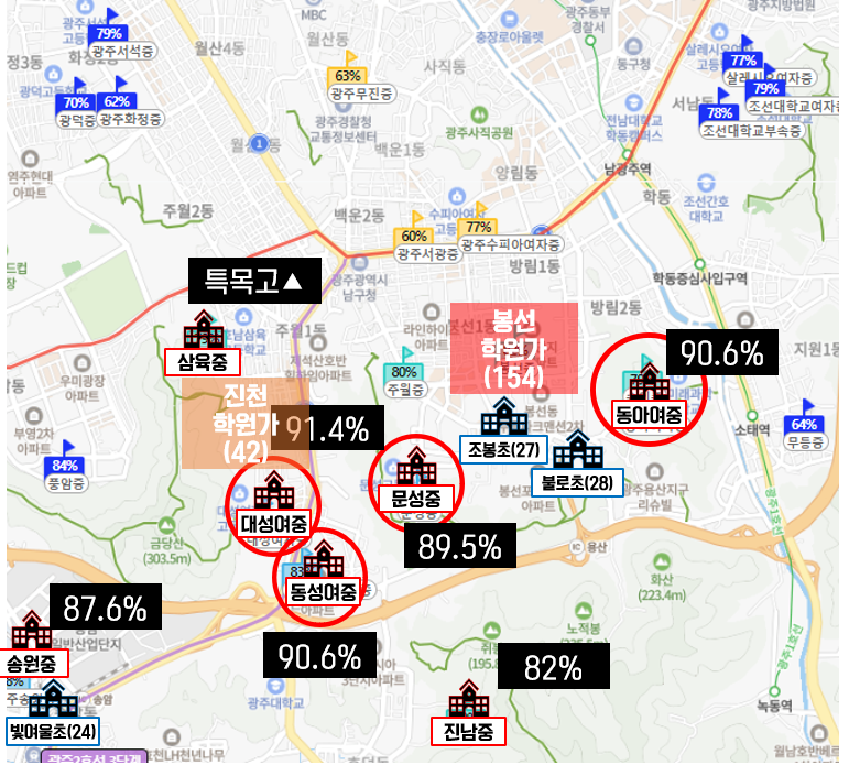 그리고 봉선 생활권의 경우 광주의 몇 없는 학군지의 역할을 하고 있습니다.