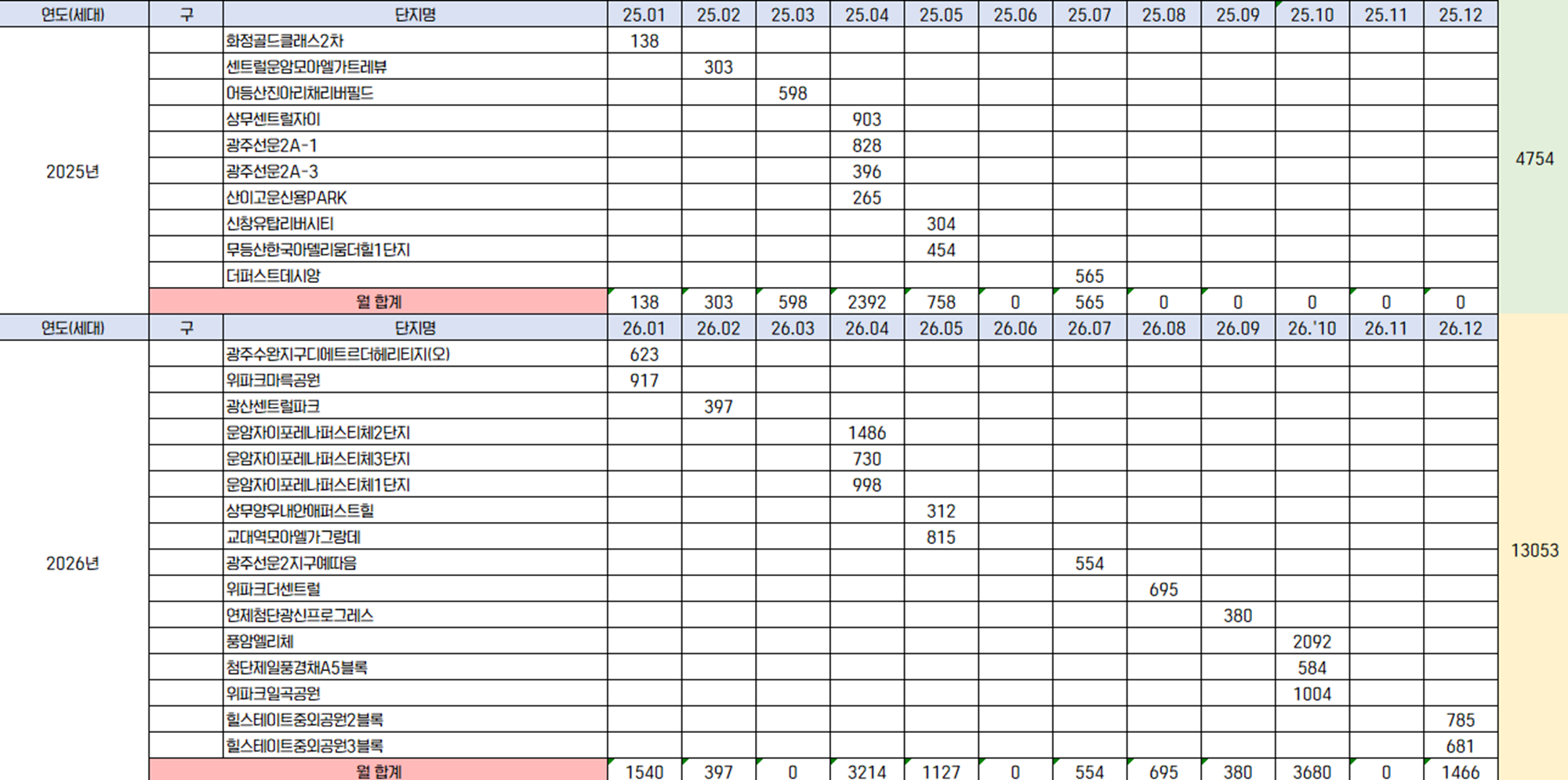 보시다시피 2026년에는 확실히 수요량은 7000세대보다는 훨씬 많은 공급량이 있습니다.