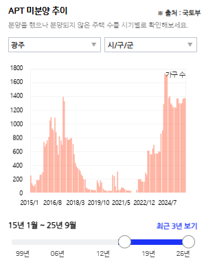 대부분의 지역에서 미분양 수는 많은 편입니다.