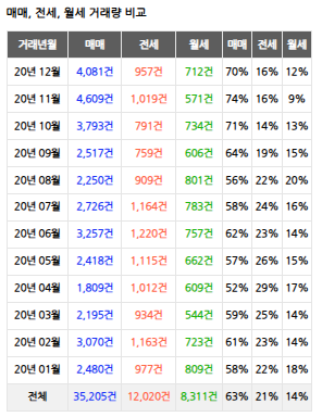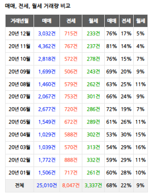 다음으로는 지역별 거래량을 살펴보겠습니다. 비교 시기는 본격적인 가격 상승 시작인 2020년입니다.