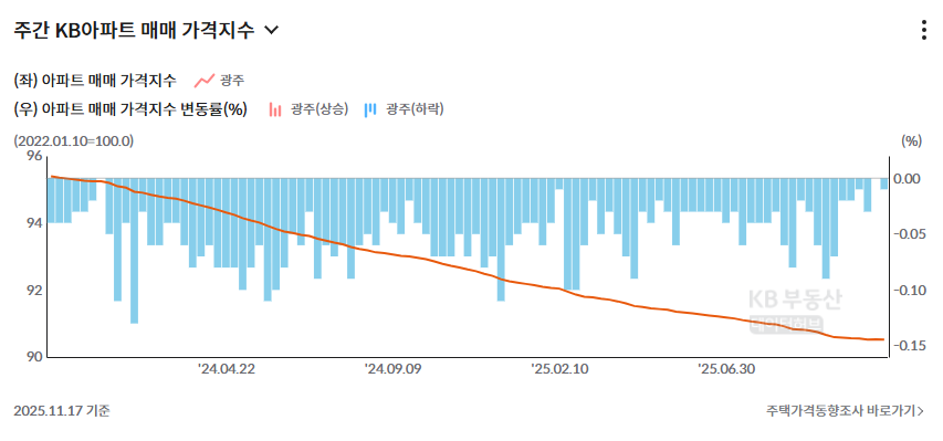 랜드마크 가격이 전고점 대비 부산은 -27%, 대전 -21%, 광주 -18%로 상대적으로 상승하지 못했습니다.