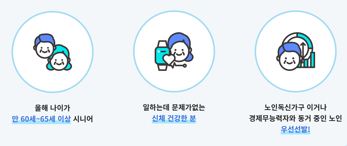 - 참여연령: 만 65세 이상(기초연금·직역연금 수급자)