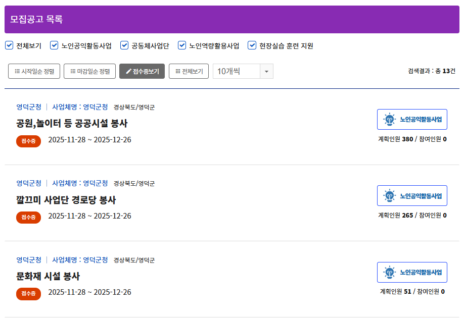 - 매년 12월은 노인일자리여기 모집 시기로, 빠르게 신청할수록 원하는 일자리를 배정받기 쉽습니다.
