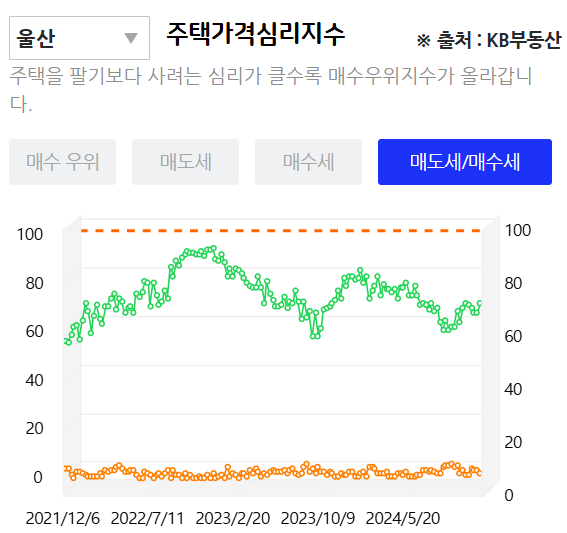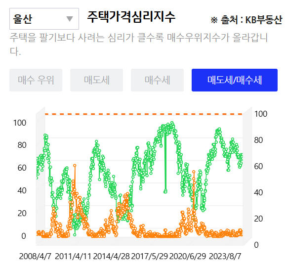 울산의 매수세는 거의 변동은 없지만, 매도세는 감소하고 있는 추세이다.