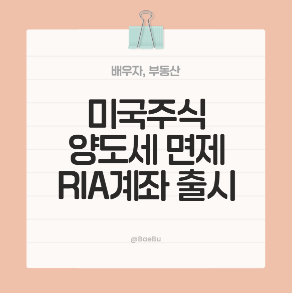 - 미국주식 양도소득세 비과세 방법으로 RIA 계좌가 주목받고 있습니다.