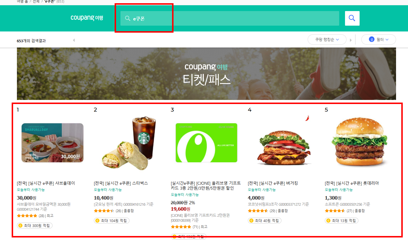 | 쿠팡 트래블 | 숙박권, 기프트카드 활용 |